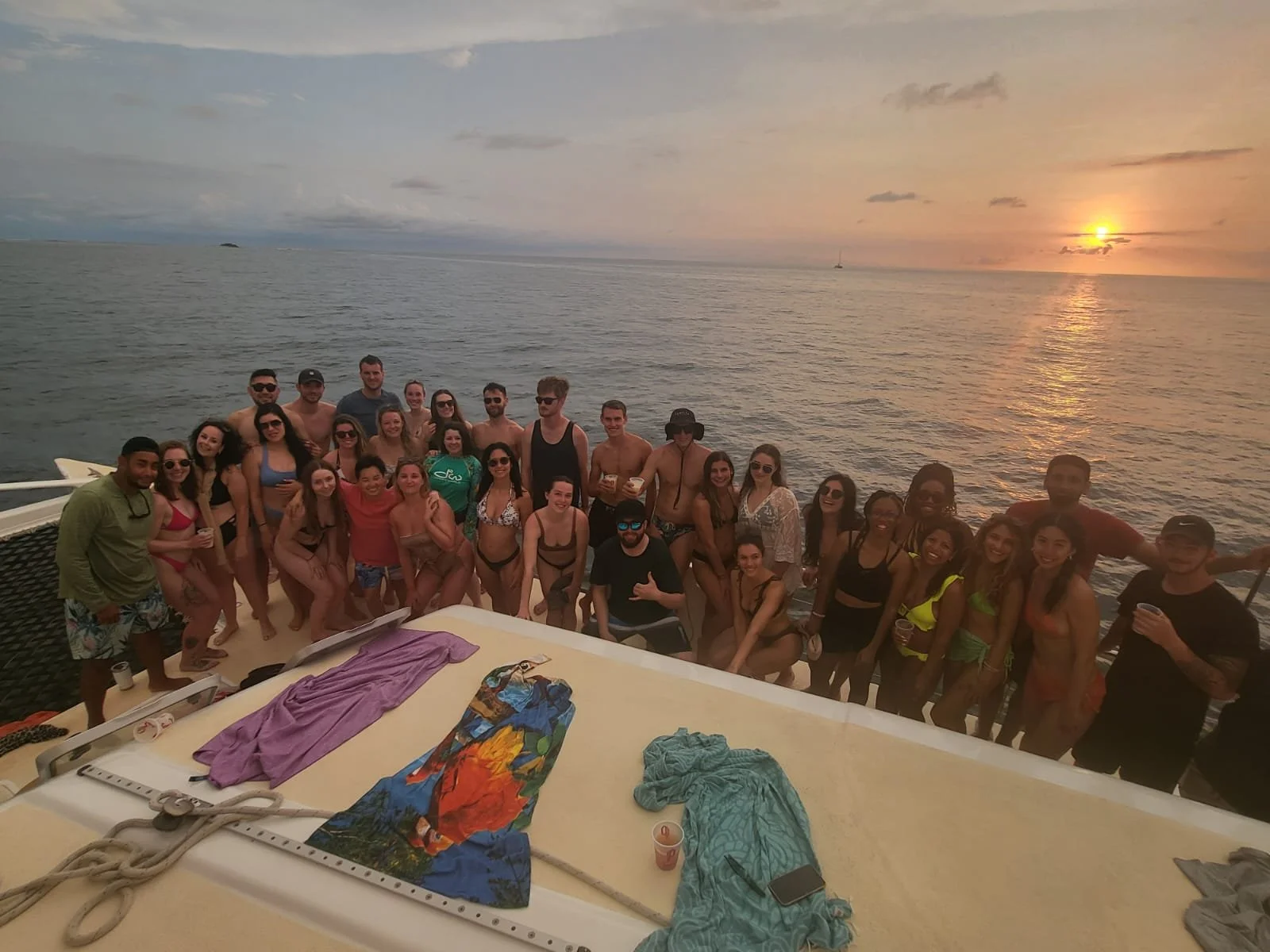 PICTURED ABOVE: Sunset catamaran cruise with the crew; Dinner at Elle’s; Post-canyoneering smiles; Final dinner group photo; Whitewater rafting; Clubbing shenanigans; Getting hot in the Hot Springs.